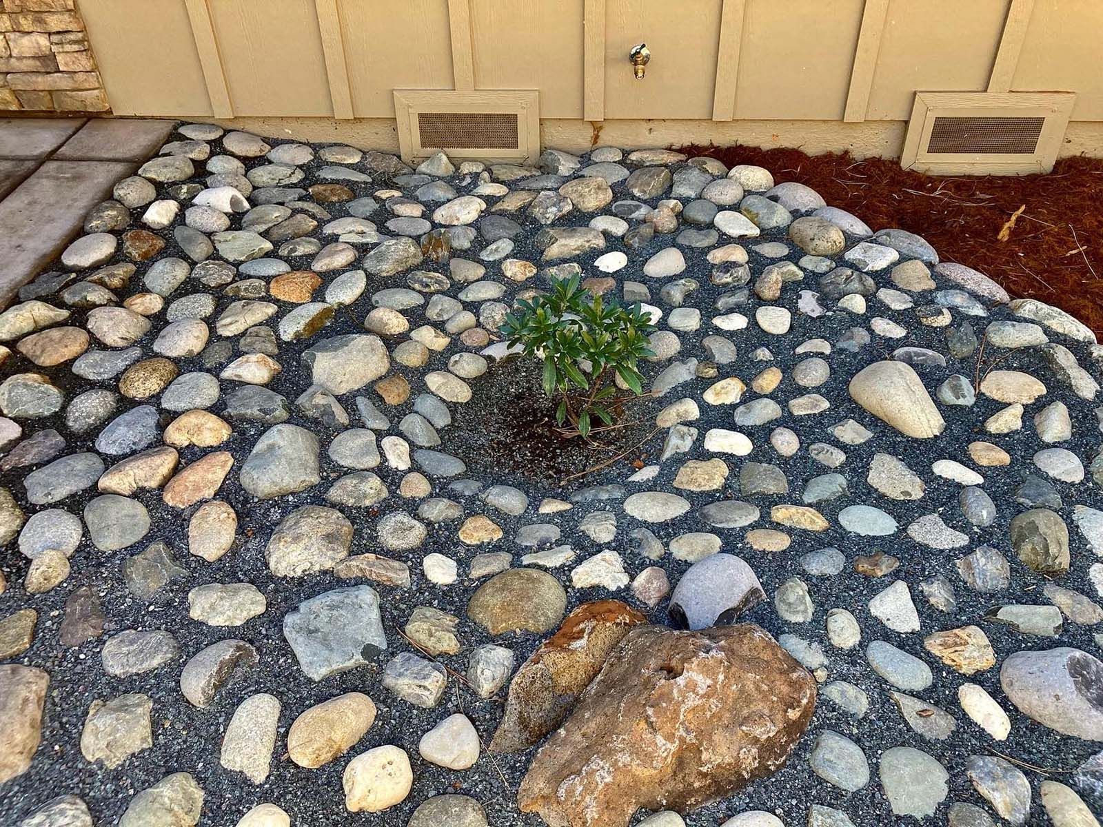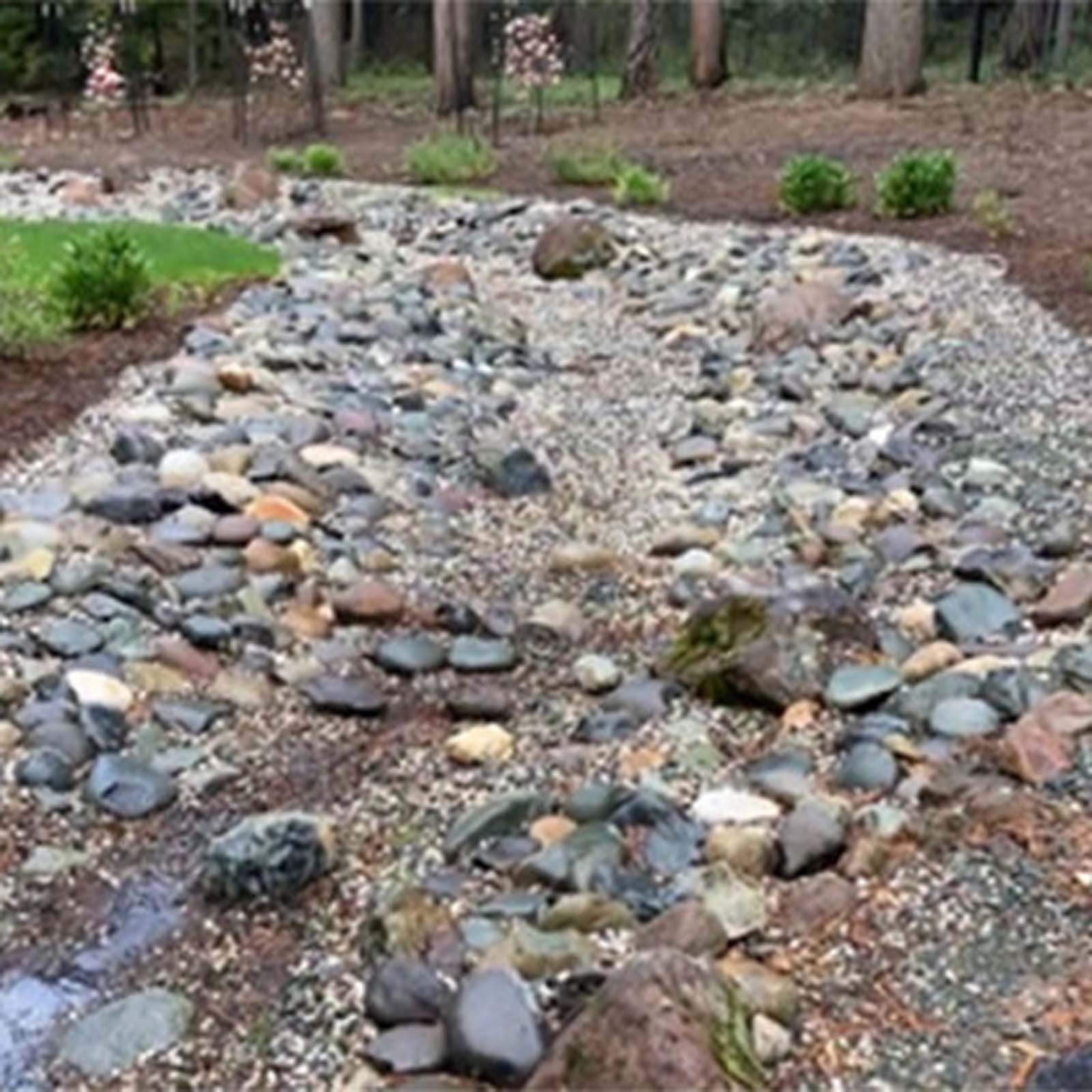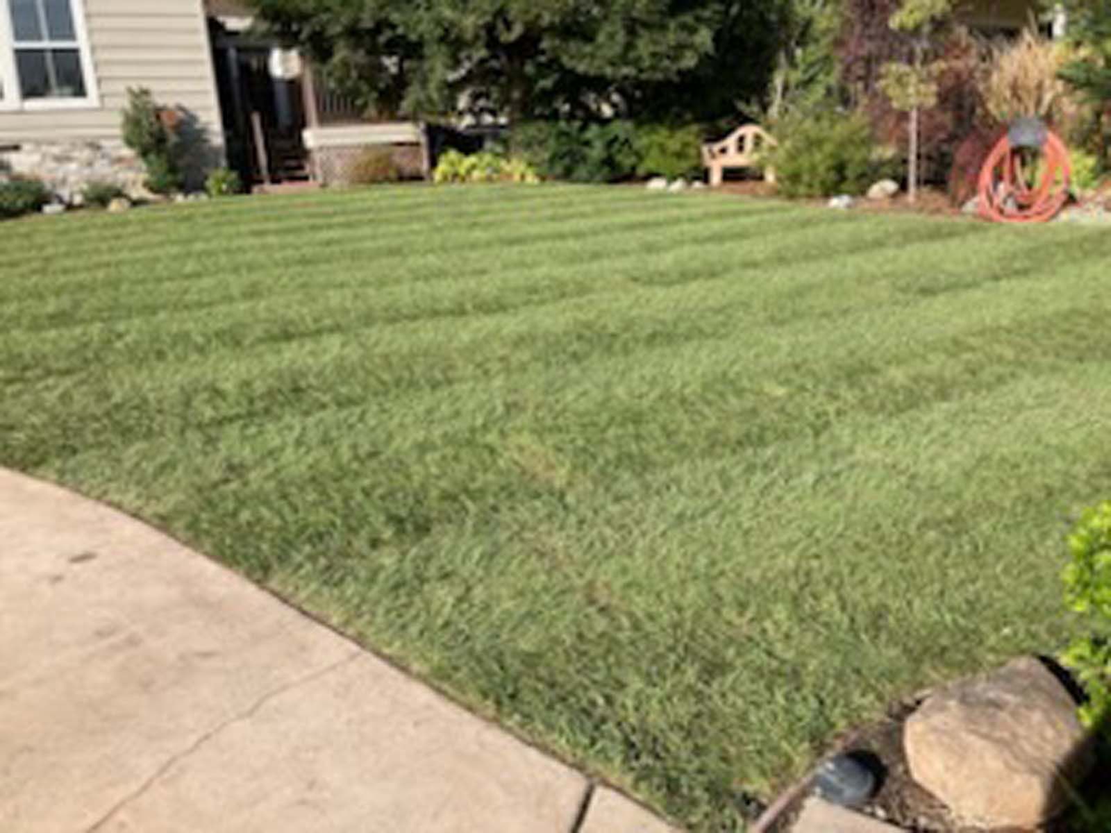 Flower and plant installations, sod, and water features.