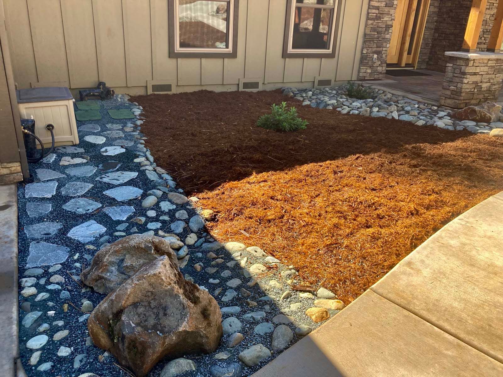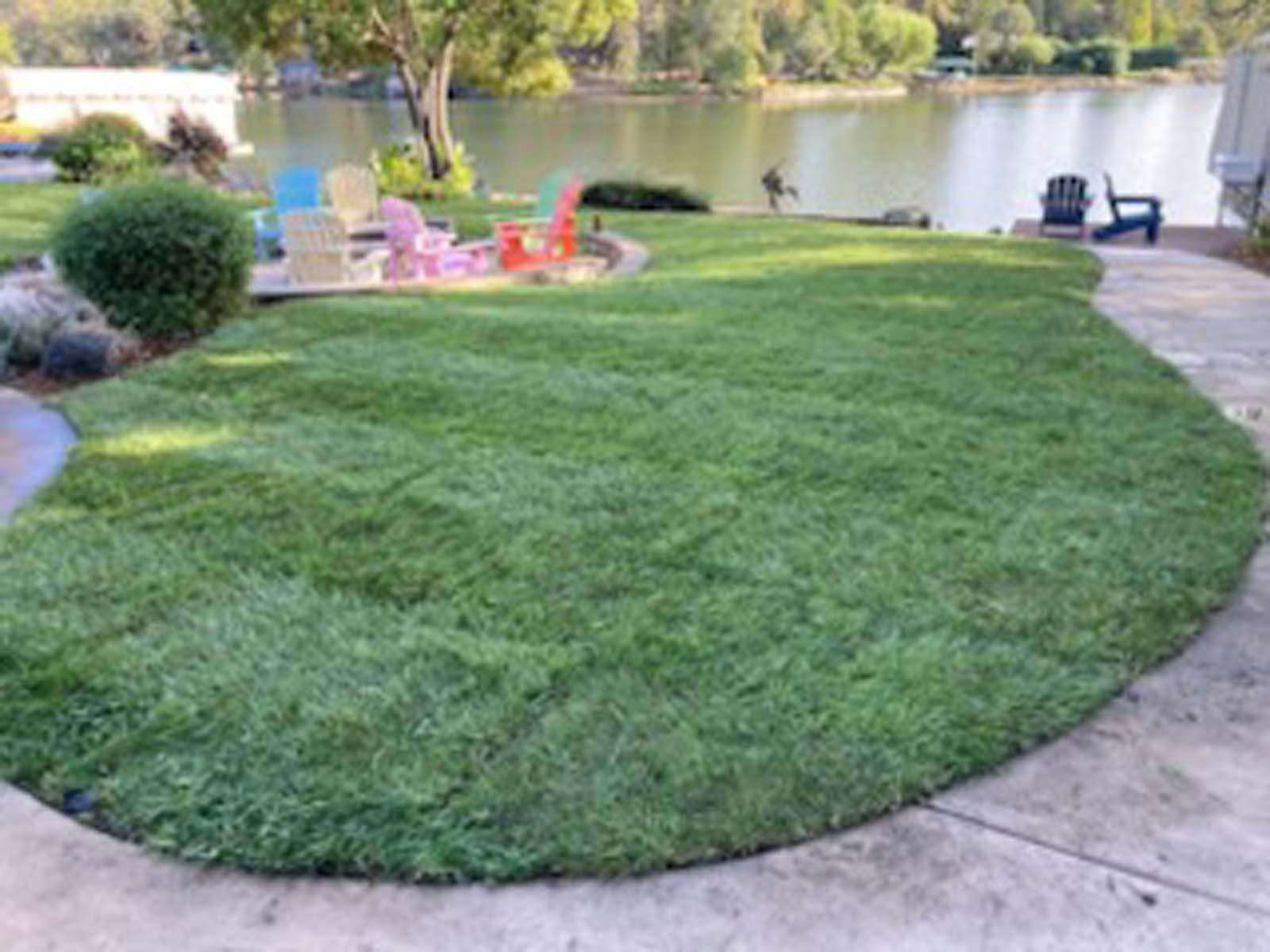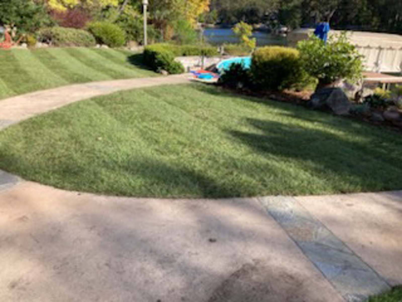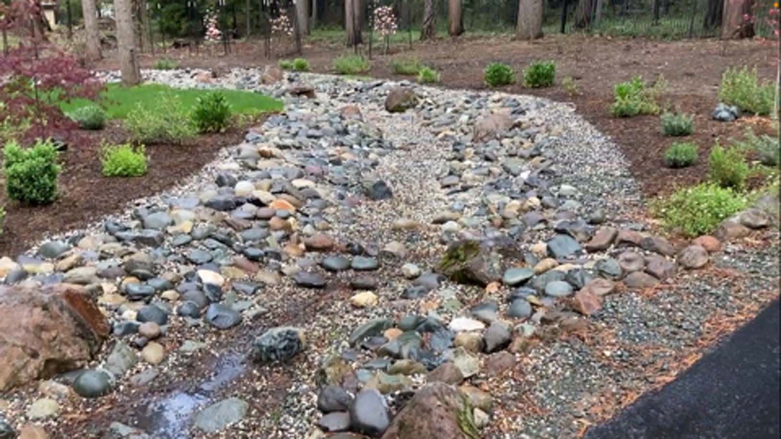 Flower and plant installations, sod, and water features.