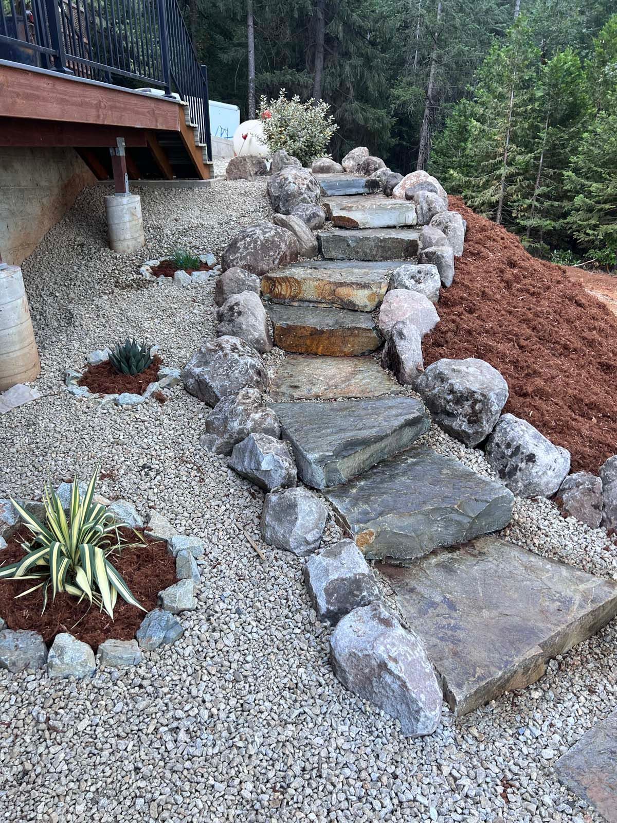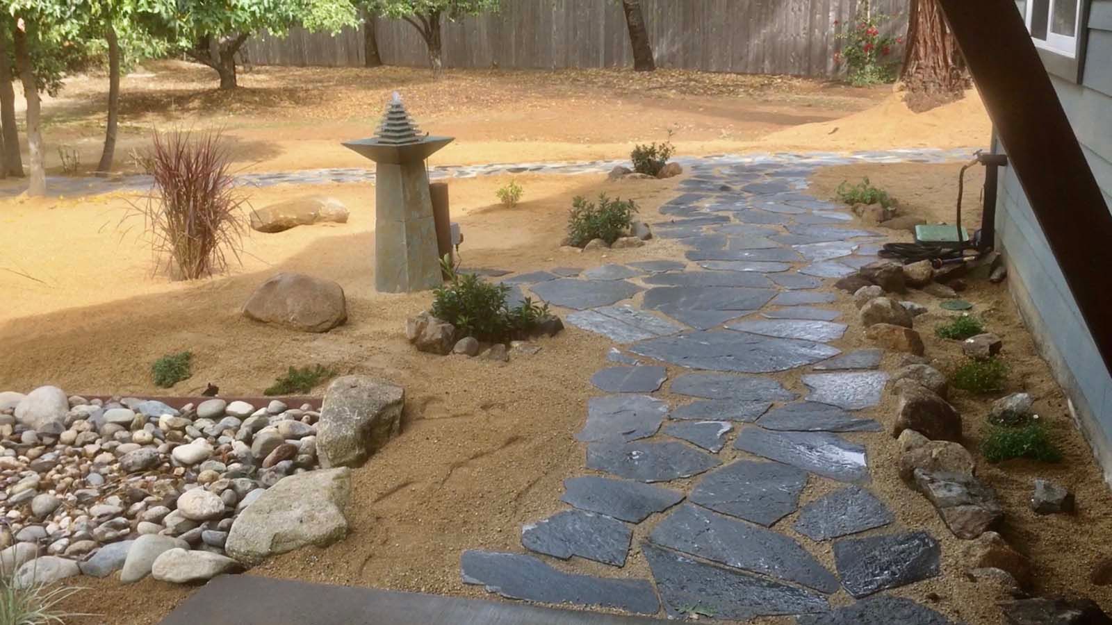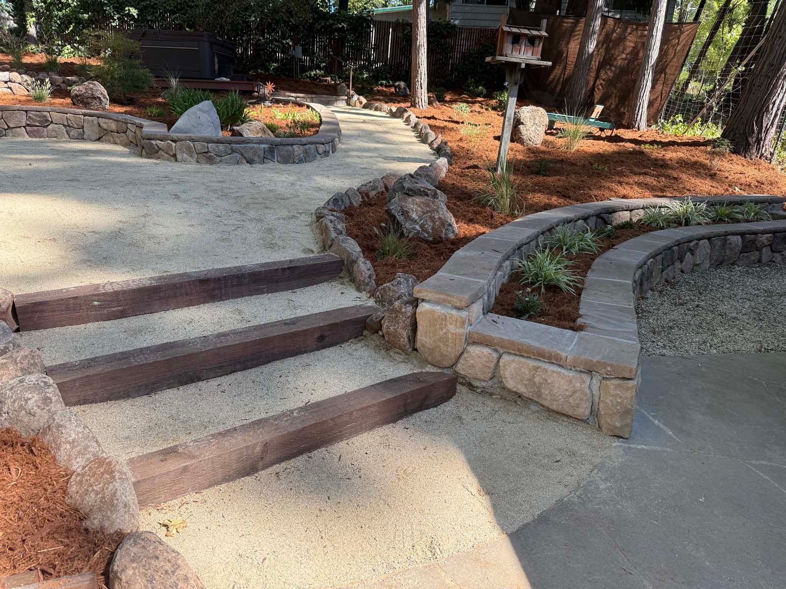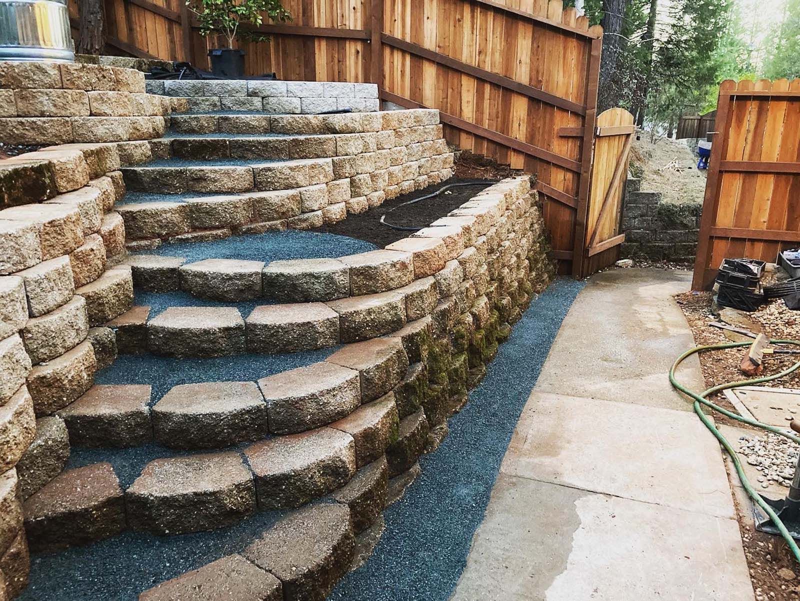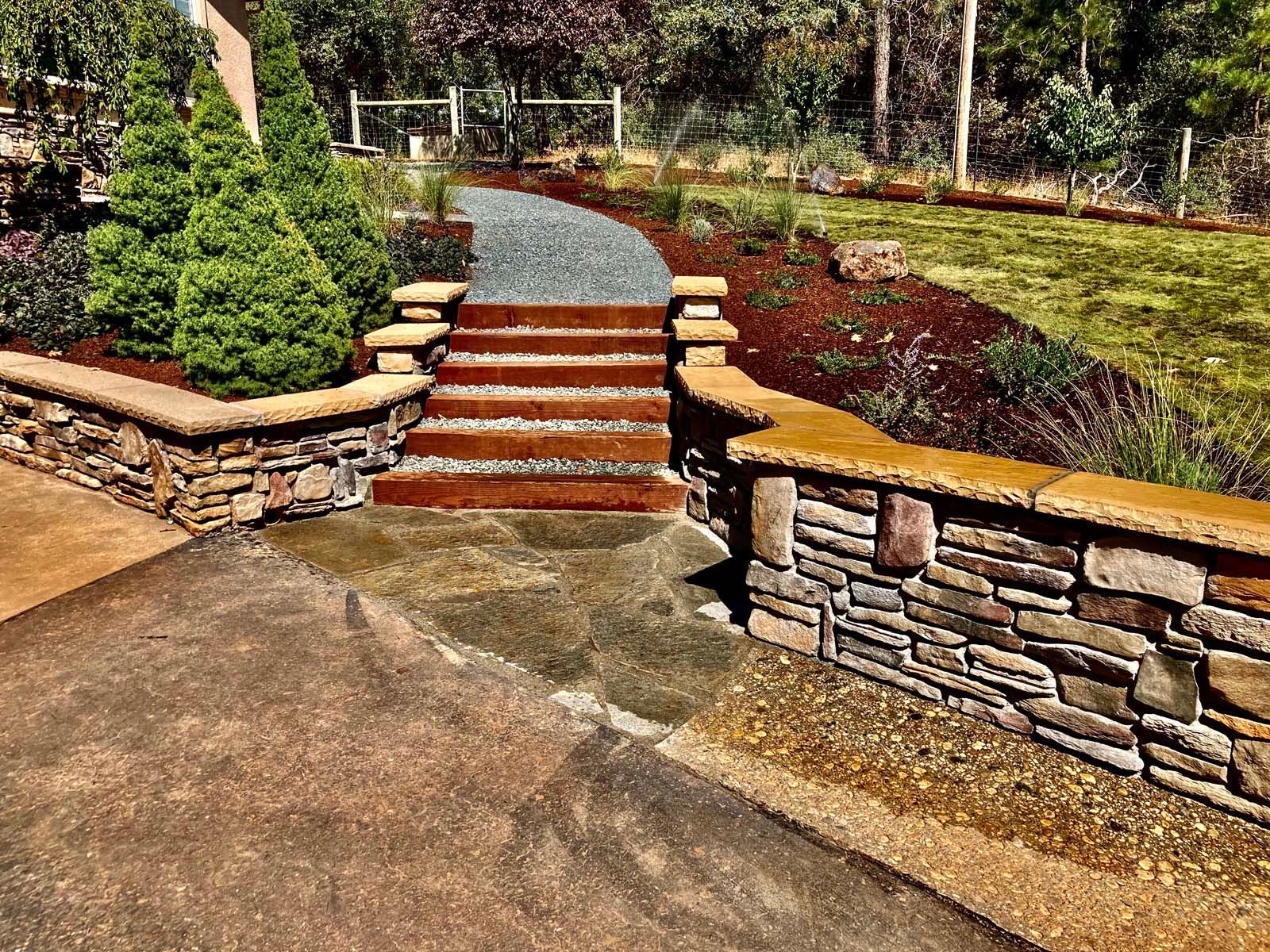 Patios, pavers, walkways, retaining walls, and water features.
